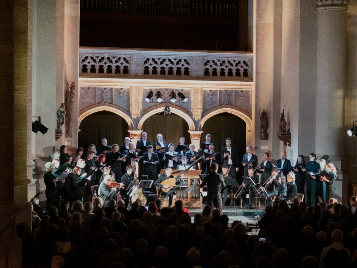 Op donderdag 29 december 2022 bracht Kamerkoor Vialta (Vialta koren Hoogstraten) het bijzondere concert "Maestro di cappella - Monteverdi in Hoogstraten" voor het talrijke publiek in een volgelopen Sint-Katharinakerk. Werken van Monteverdi hebben een technische complexiteit die voor amateurkoren niet zo eenvoudig te overwinnen is, en mede daardoor wordt deze oude, maar luisterrijke muziek slechts zelden opgevoerd. Het was voor de zangers van Vialta dan ook een hele uitdaging om deze meesterwerken aan te leren, in te oefenen en uiteindelijk zeer succesvol ten gehore te brengen. Voor de veelstemmige vertolking kon Vialta rekenen op de harmonische samenwerking met twee professionele ensembles. De zangers van Duartes vocal ensemble hebben iedereen bekoord met hun stuk voor stuk prachtige stemmen. Ook ensemble a heeft alle toeschouwers laten genieten met hun welluidende muziek in middentoonstemming op authentieke instrumenten uit de tijd van Monteverdi.